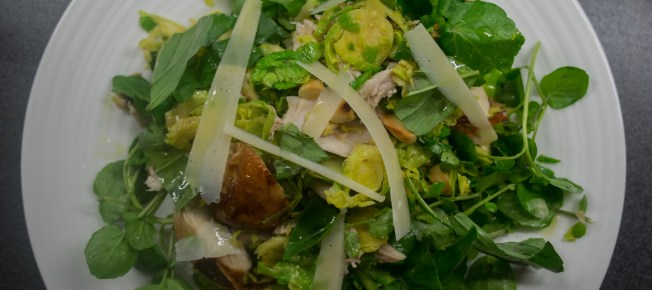 Sprout, chicken and pecrorino winter salad (M&S recipe) - perfect for post-Christmas as it's light but also would be ideal for using leftover turkey, cheese, nuts and sprouts.
